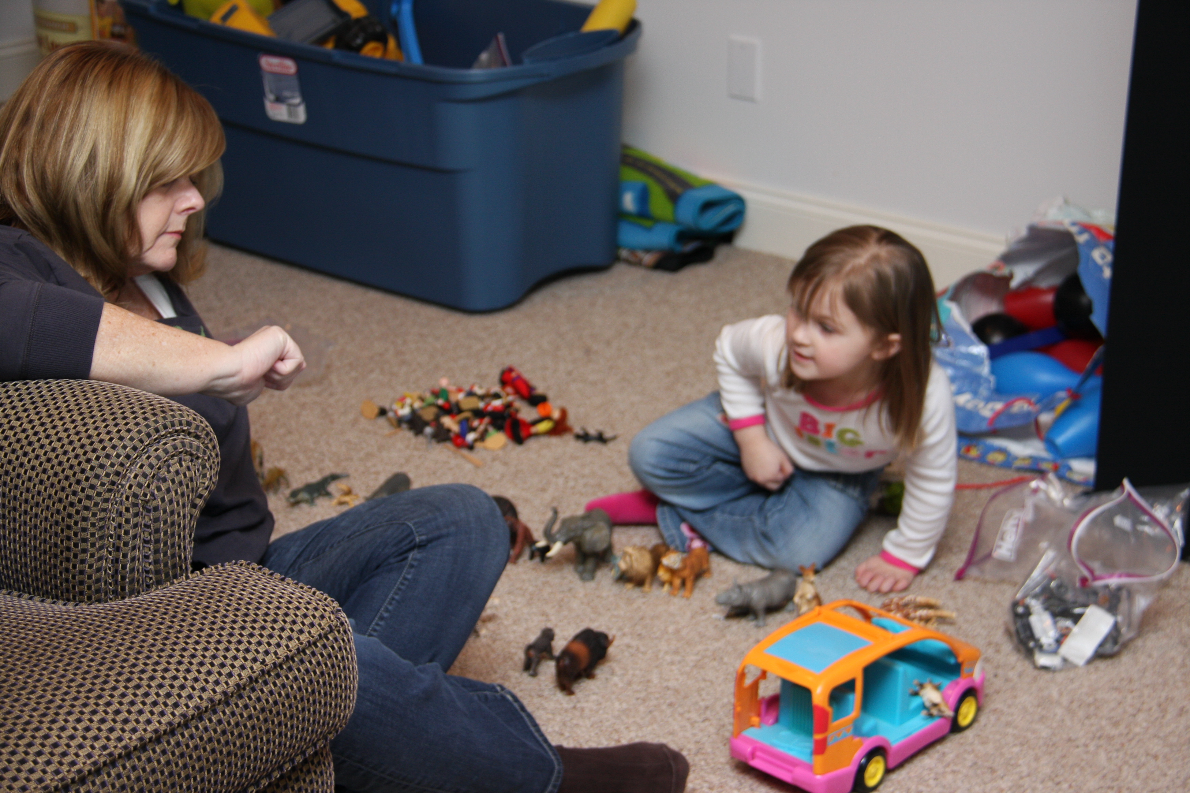 In the rec room, surrounded by games and toys of all kinds, you gravitated toward the plastic animals. Grammy joined us and together matched up the Mommy animals with the baby animals.