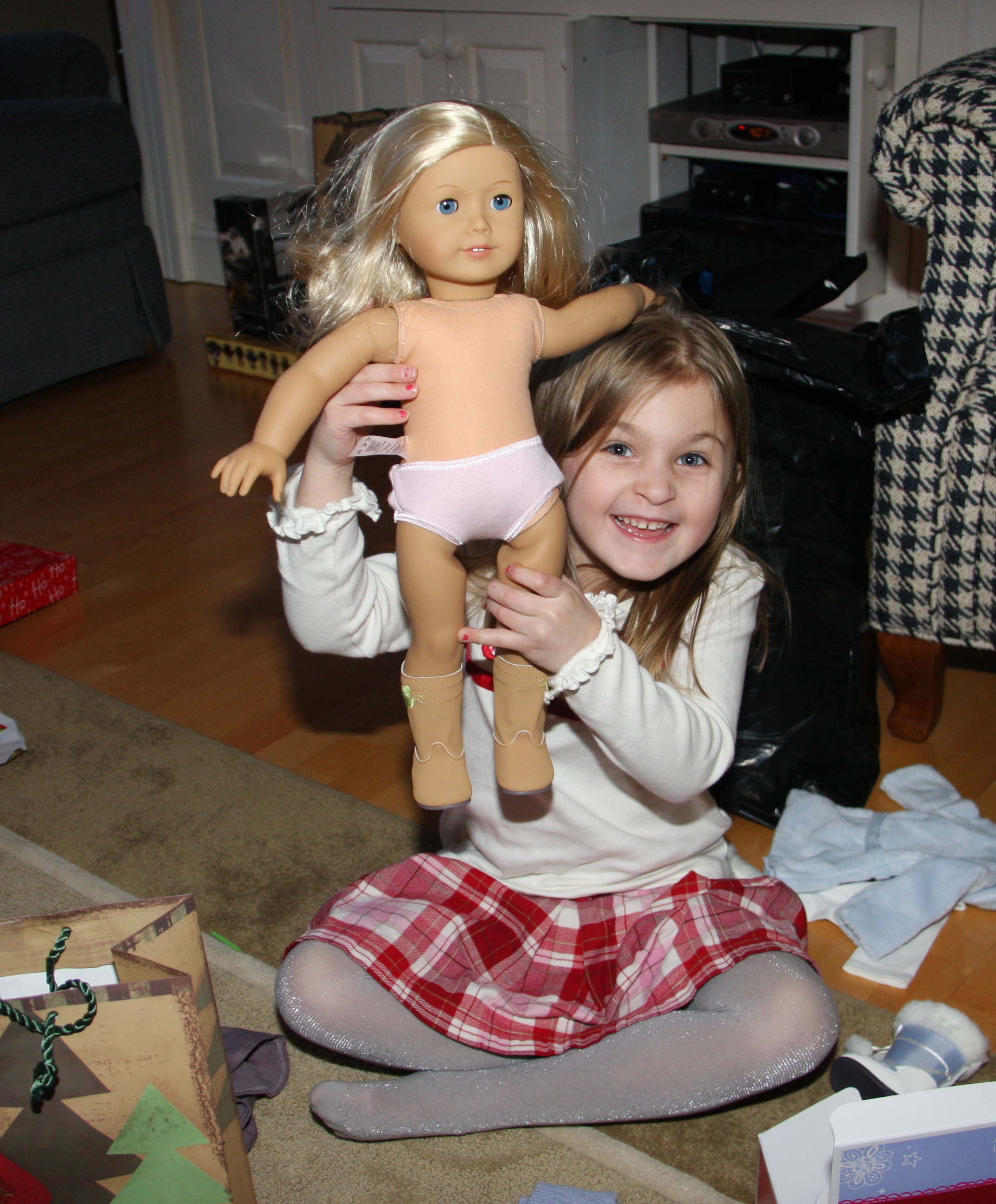 Pat Beaupre greeted us…I gave her a friendly hug. She ushered us into the living room where the Christmas tree presided. We chatted for awhile and I explained how I had secretly marked each wrapped present with a special code so they could figure out who should get each one.