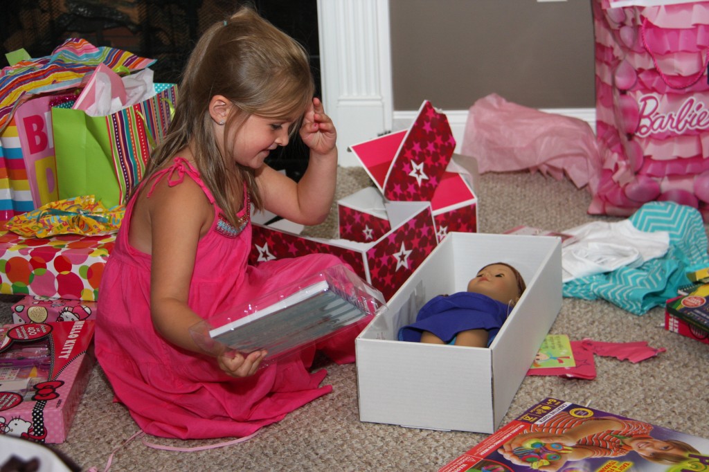 After that, Grammy and I went to your house, along with your Nanny and Dadu, to watch you open your presents. We got you an American Doll named Saige… along with special doll clothes and pierced earrings.