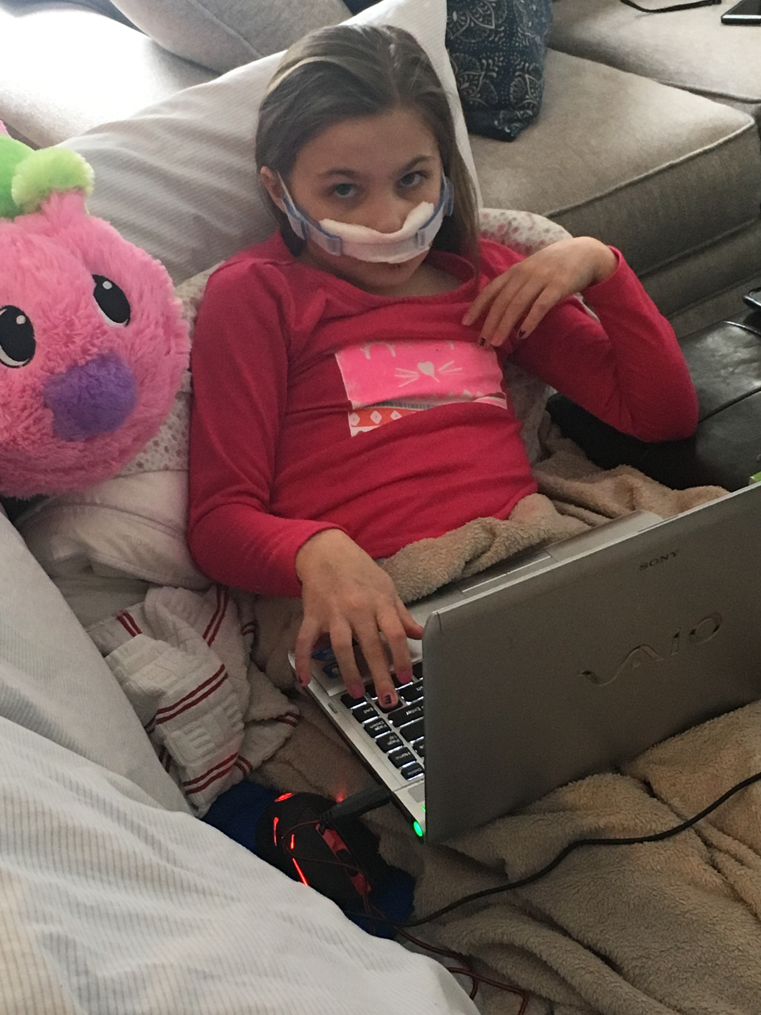 It wasn’t a pretty sight. Your face took the full force of the fall. Upper teeth pushed out of their sockets and bent. Nose septum fractured. 20+ stitches, most of which were inside your mouth. Face not looking like Ainsley’s normal beautiful face.