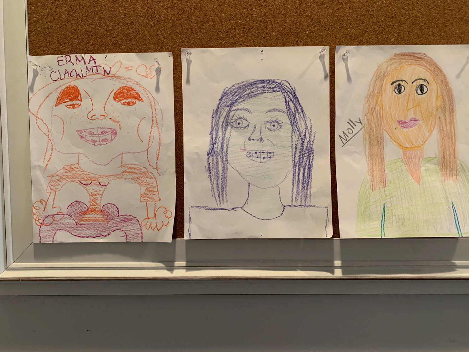 You, Molly and “Erma” Clickman were huddled together on the floor in front of our fireplace on a cold winter night.  Unable to sit still for long, you all gathered crayons & paper and then sketched self portraits.  Great effort across the board!  I’m voting for the middle artistic interpretation to win the award for “best likeness.”